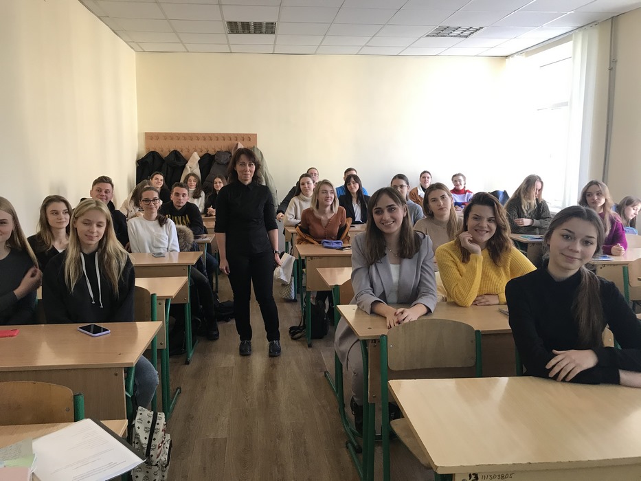 На запрошення кафедри іноземної філології та перекладу до студентів завітала к.філол.н., доцент кафедри англійської філології ВДПУ імені М.Коцюбинського Людмила Прадівлянна.