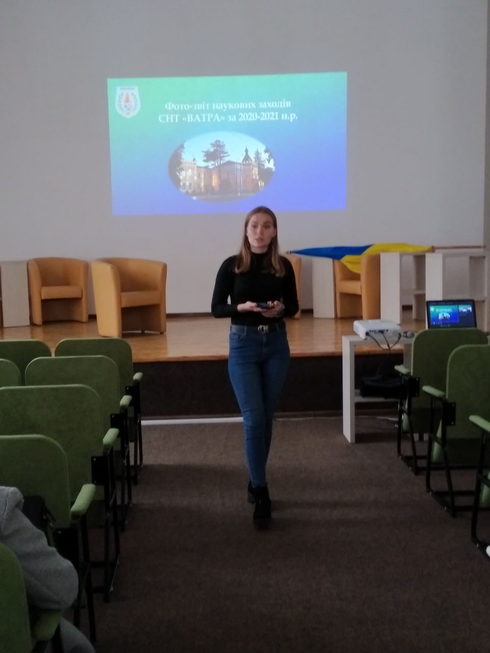 Під час презентації члени СНТ «ВАТРА» Бантюк Д. (гр. МЗД-31д) та Складанюк М. (гр. ФБСС-31д) розповіли про роботу товариства за минулий навчальний рік в умовах карантинних обмежень, успіхи та здобутки у науковій сфері, поділилися планами та ідеями на майбутнє.