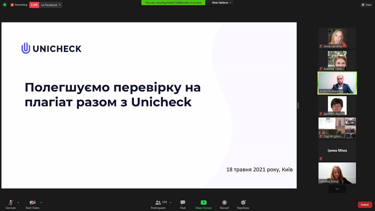 18 травня 2021 року слухачі Бізнес-школи ВТЕІ КНТЕУ брали участь у вебінарі "Полегшуємо перевірку на плагіат разом з Unicheck" від компанії Unicheck Україна.