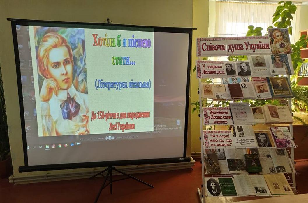 Захід супроводжувала книжково-ілюстративна виставка «Співоча душа України», на якій представлені твори Лесі Українки різних років видання, а також документи про її життєвий та творчий шлях із фондів бібліотеки.