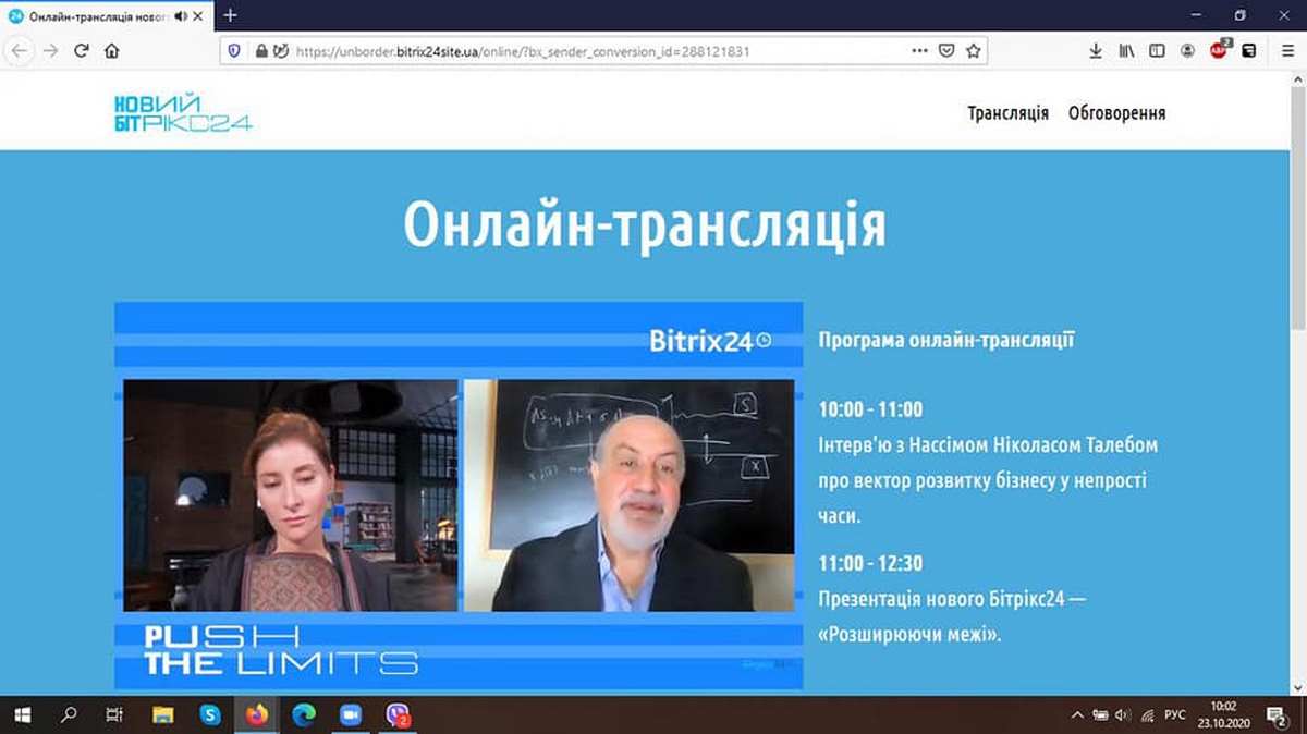 23 жовтня 2020 року викладачі та здобувачі вищої освіти ВТЕІ КНТЕУ - слухачі Бізнес-школи ВТЕІ КНТЕУ брали участь в онлайн-презентації нового Бітрікс24.