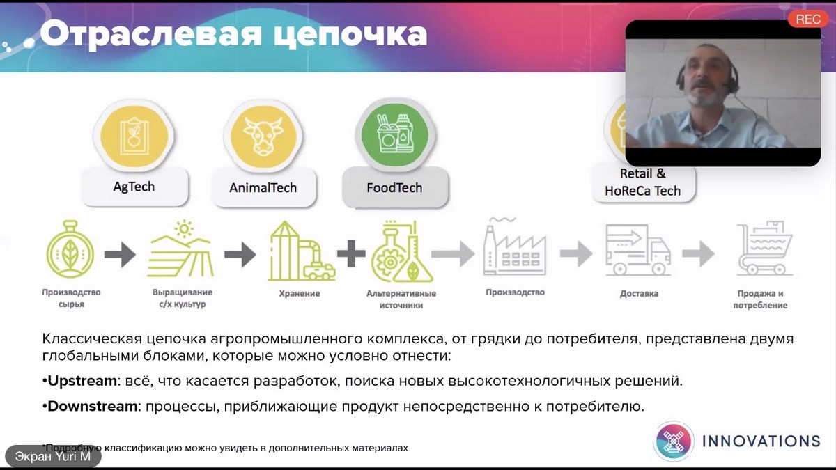 Сьогодні говорили про те, як технології змінюють food сферу. Фудтех передбачає інтеграцію цифрових технологій в усі етапи виробництва їжі. Однак сфера фудтеха не обмежуємося лише продуктами — сюди входить оптимізація доставки, імерсивні проєкти, розробки в хімічній галузі: наприклад, створення рослинного білка, альтернативного м'яса.