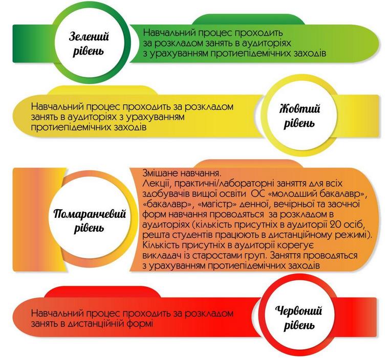 Особливості організації навчального процесу на період дії карантину за рівнями епідемічної небезпеки