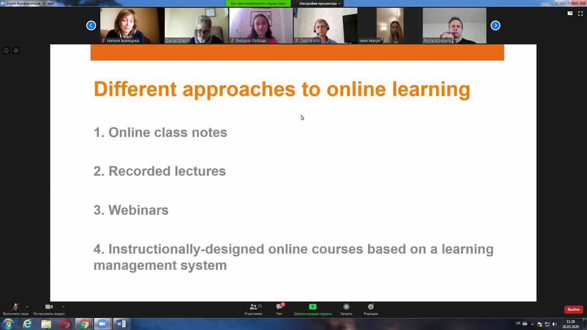 28 травня 2020 року кафедра іноземної філології та перекладу провела всеукраїнський круглий стіл «Мовна освіта в Україні: сучасні досягнення та виклики» (на платформі Zoom). Тематика доповідей учасників відобразила найбільш актуальну на сьогодні проблему – організація дистанційного навчання. Спеціально запрошеними спікерами заходу стали Річард Айленд (R.Ireland, TEFL freelancer) та Євгенія Чугу (Y. Chugu, Lecturer, Placement and thesis coordinator. School of Marketing Management Hance University, Groningen, The Netherlands), які поділилися досвідом онлайнового навчання в голландських університетах.