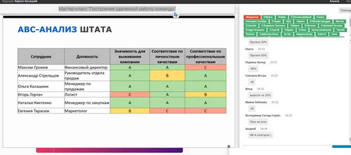 11 травня 2020 року учасники Бізнес-школи ВТЕІ КНТЕУ брали участь в майстер-класі «Побудова віддаленої роботи бізнес-команди» від компанії «Бізнес Конструктор» та спікера Кирила Куніцина. Говорили про ключові елементи системного бізнесу з віддаленою роботою, про віддалене управління завданнями і проектами, про регулярне (системне) управління і звітність віддаленої команди, про мотивацію і лідерство персоналу на відстані. Дізналися про особливості застосування АВС - аналізу працівників компанії в умовах кризи та переходу на віддалену роботу.