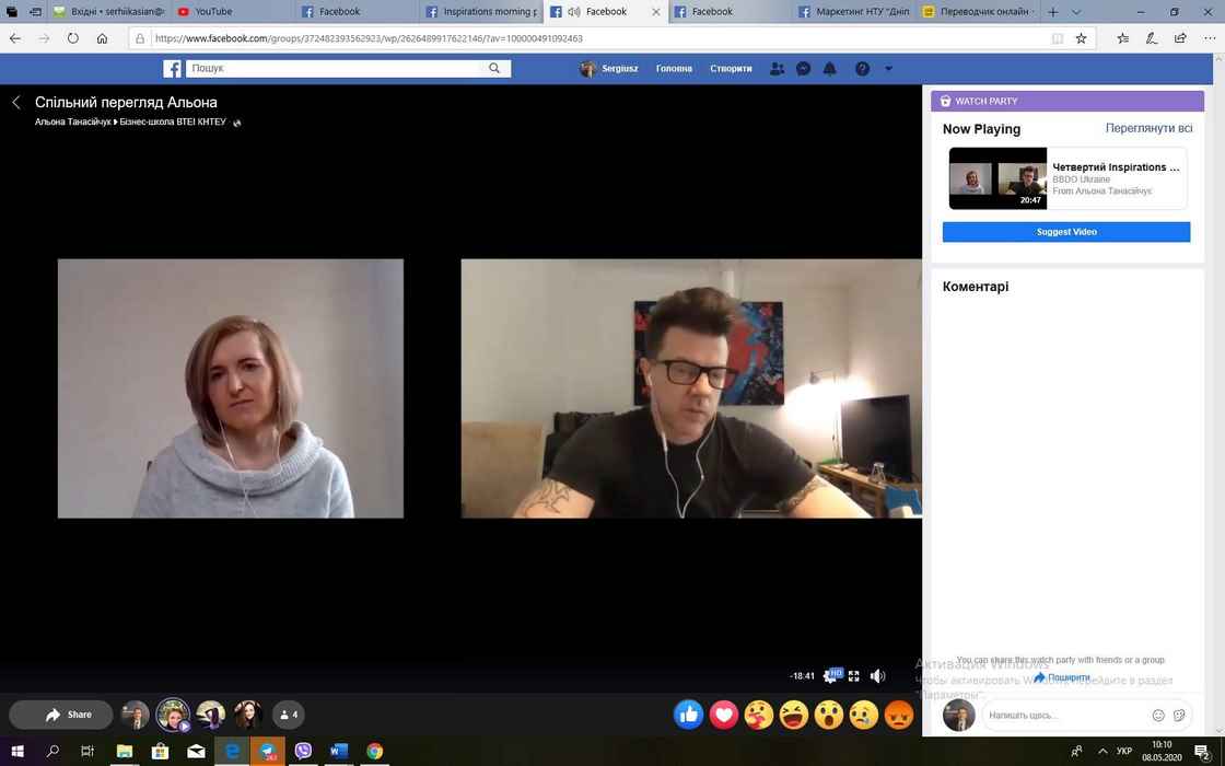 08 травня 2020 року викладачі ВТЕІ КНТЕУ та здобувачі вищої освіти прийняли участь у спільному перегляді інтерв'ю Регіонального виконавчого креативного директора BBDO Ukraine & Central Asia Anze Jereb з гостем Inspirations morning portfolio – Client Service директором BBDO Ukraine #IrinaDanilevskaya.