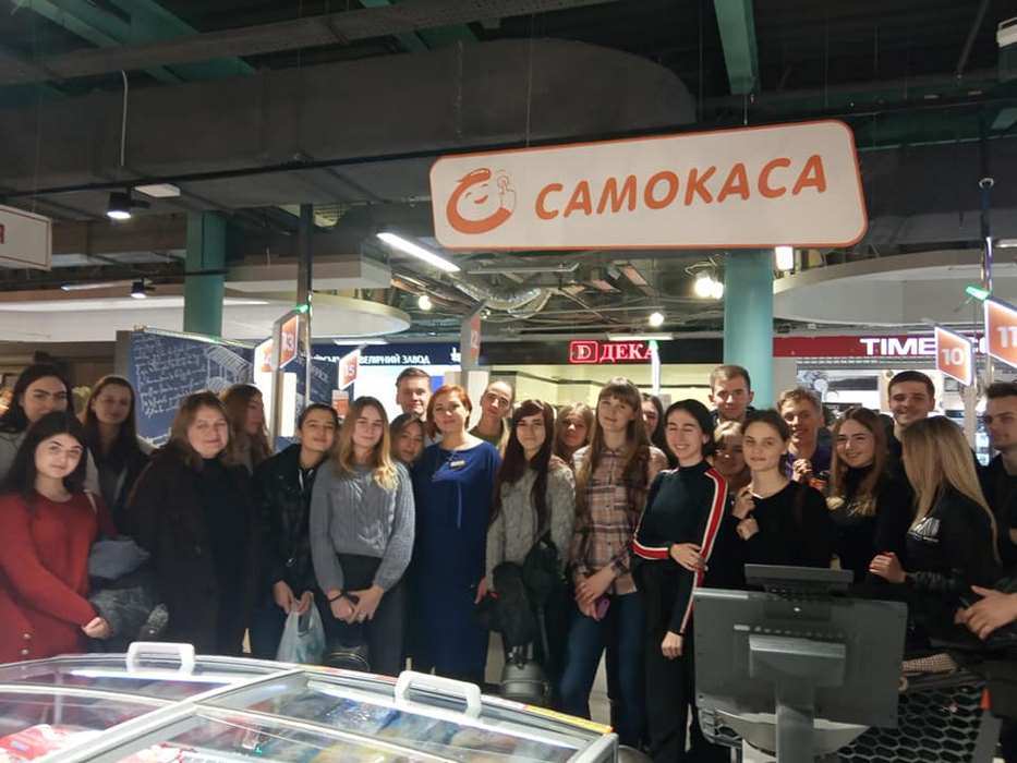 Учасників екскурсії привітно зустріла директор підприємства Ольга Галанина, яка розповіла про нову маркетингову концепцію магазину "Сільпо", продемонструвала роботу всіх відділів магазину. Маркетологи ВТЕІ КНТЕУ на 1 годину виступили в ролі працівників відділу «Власного виробництва», «Фермерської та крафтової продукції» здійснюючи дегустацію хліба з гречаної муки, м'ясної та рибної крафтової продукції, на десерт була фруктова екзотика.
