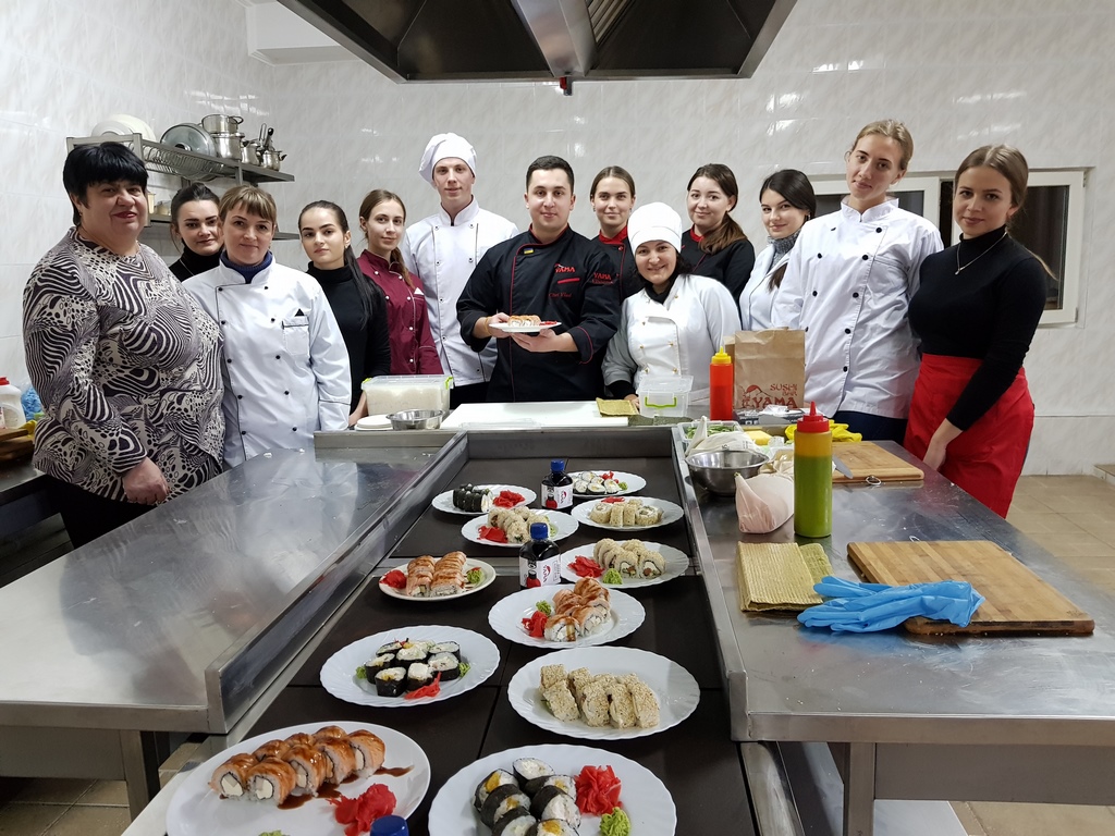 Ніхто не ставить під сумнів, що головною причиною японського довголіття є здорове, повноцінне харчування, обов’язковим атрибутом якого є різні види суші. Сьогодні суші популярні у всьому світі, їх особливо обожнює молоде покоління. 29 листопада 2018 року на кафедрі туризму та готельно-ресторанної справи відбувся майстер-клас «Сучасні технології суші», проведений власником відомого у Вінниці та дуже популярного серед молоді суші-бару «Яма» Мигалик Владислав, який сам нещодавно був студентом та є випускником ВТЕІ КНТЕУ.