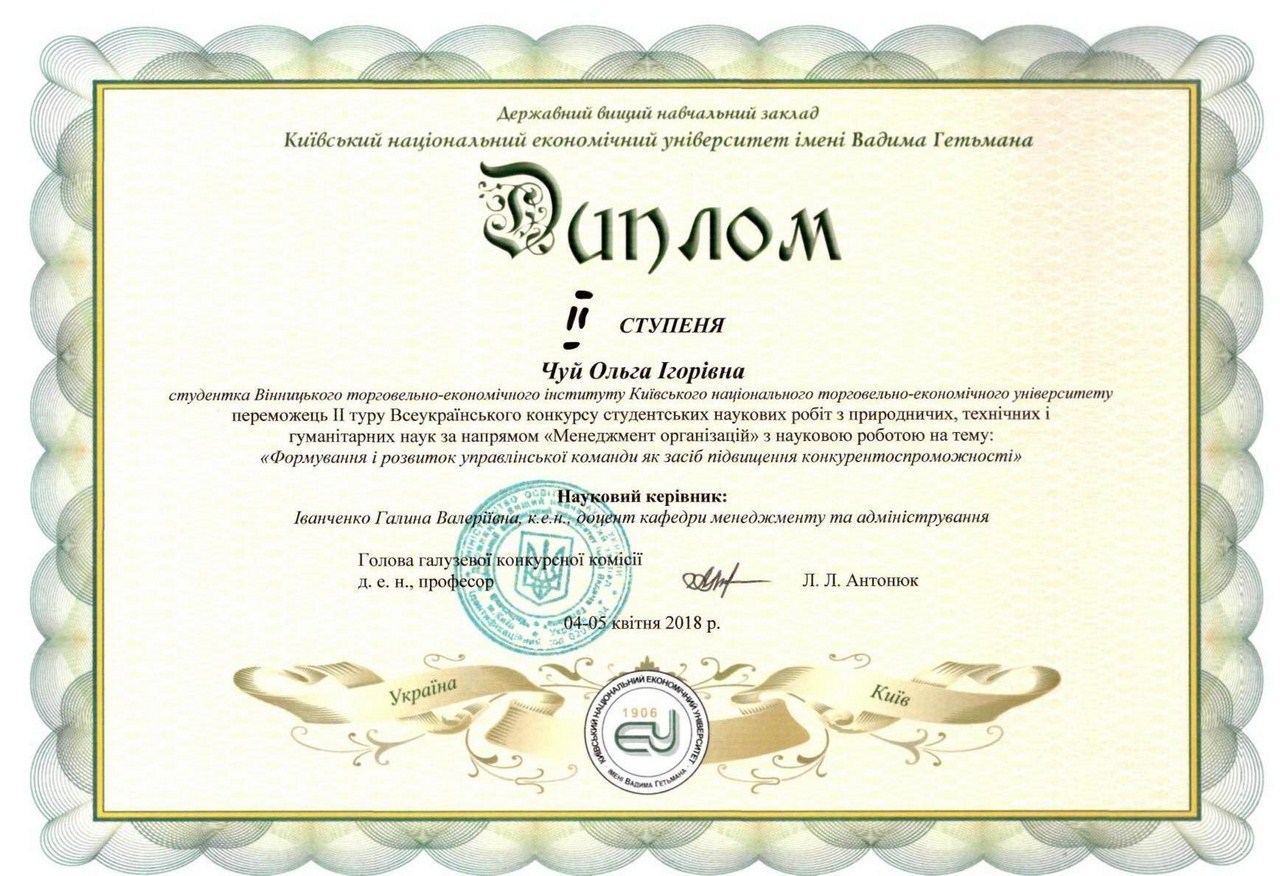 4-5 квітня 2018 року на базі ДВНЗ «Київський національний економічний університет ім. В.Гетьмана» відбувся ІІ тур Всеукраїнського конкурсу студентських наукових робіт з галузей знань і спеціальностей за напрямом «Менеджмент організацій».