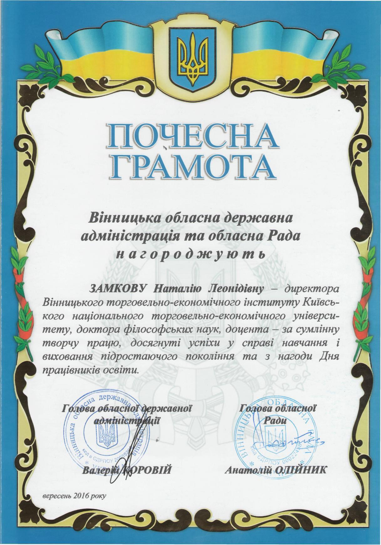 29 вересня 2016 року у залі обласного музично-драматичного театру ім.Садовського традиційно відбулися урочистості з нагоди Дня працівників освіти. Кращі представники освітньої галузі регіону приймали вітання та слова щирої вдячності за працю від голови обласної державної адміністрації Валерія Коровія, голови обласної Ради Анатолія Олійника, Вінницького міського голови Сергія Моргунова та заступника голови – директора Департаменту освіти і науки ОДА Ігоря Івасюка.