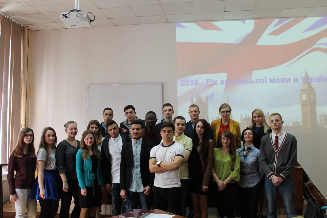 7 квітня 2016 року з метою сприяння вивчення англійської мови студентами, на факультеті товарознавства, туризму та готельно-ресторанної справи була проведена кураторська година на тему: «Англійська мова в сучасному світі: виклики та можливості». Ведучі заходу були заступник декана факультету товарознавства, туризму та готельно-ресторанної справи Ірина Миколаївна Білоус та студент Владислав Дмитрієв (група ГРС-21 д).