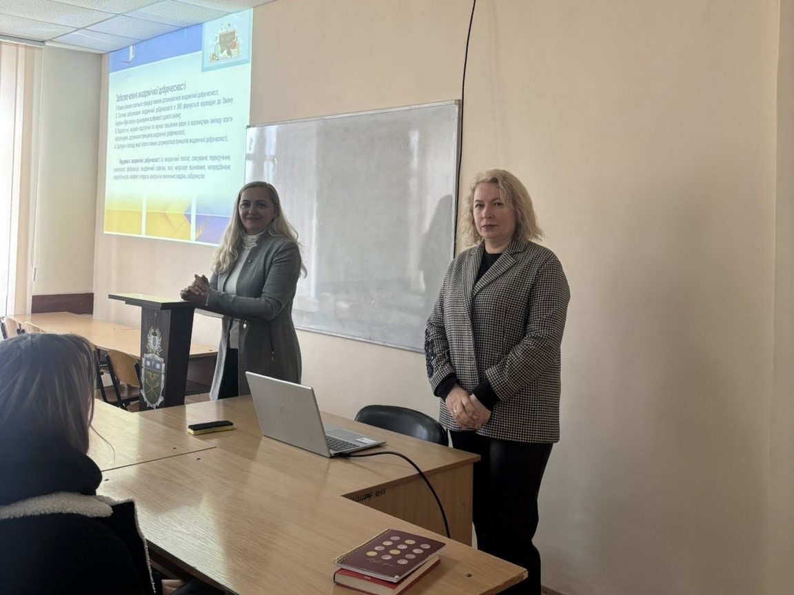 4 березня 2025 року викладачами кафедри права було проведено правовий семінар «Дотримання академічної доброчесності» для здобувачів 2 курсу освітнього ступеня бакалавр спеціальності «Право». Спікером заходу виступила гарант освітньо-професійної програми за спеціальністю 081 «Право», кандидат юридичних наук, доцент Костюк Наталія. Зі вступним словом виступила завідувач кафедри права, доктор юридичних наук, доцент Сухоребра Тетяна, яка акцентувала увагу присутніх на важливості дотримання принципів академічної доброчесності.