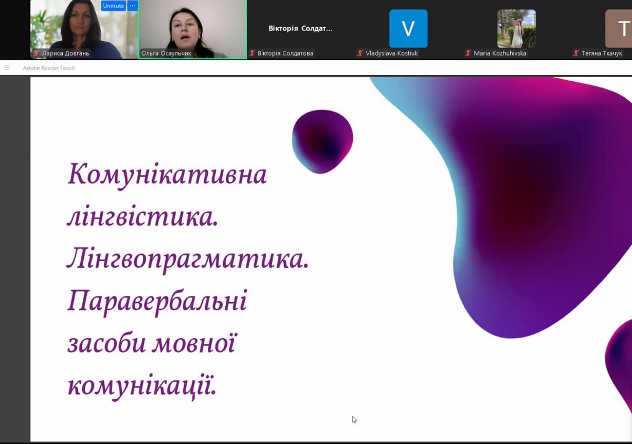 4 березня 2025 року у форматі онлайн відбулося чергове засідання дискусійного клубу «Сучасні лінгвістичні студії» зі студентами-магістрами групи Ф-11 д(м). Було заслухано доповіді студентів на актуальну тематику «Комунікативна лінгвістика. Паралінгвістика. Паравербальні засоби мовної комунікації.»