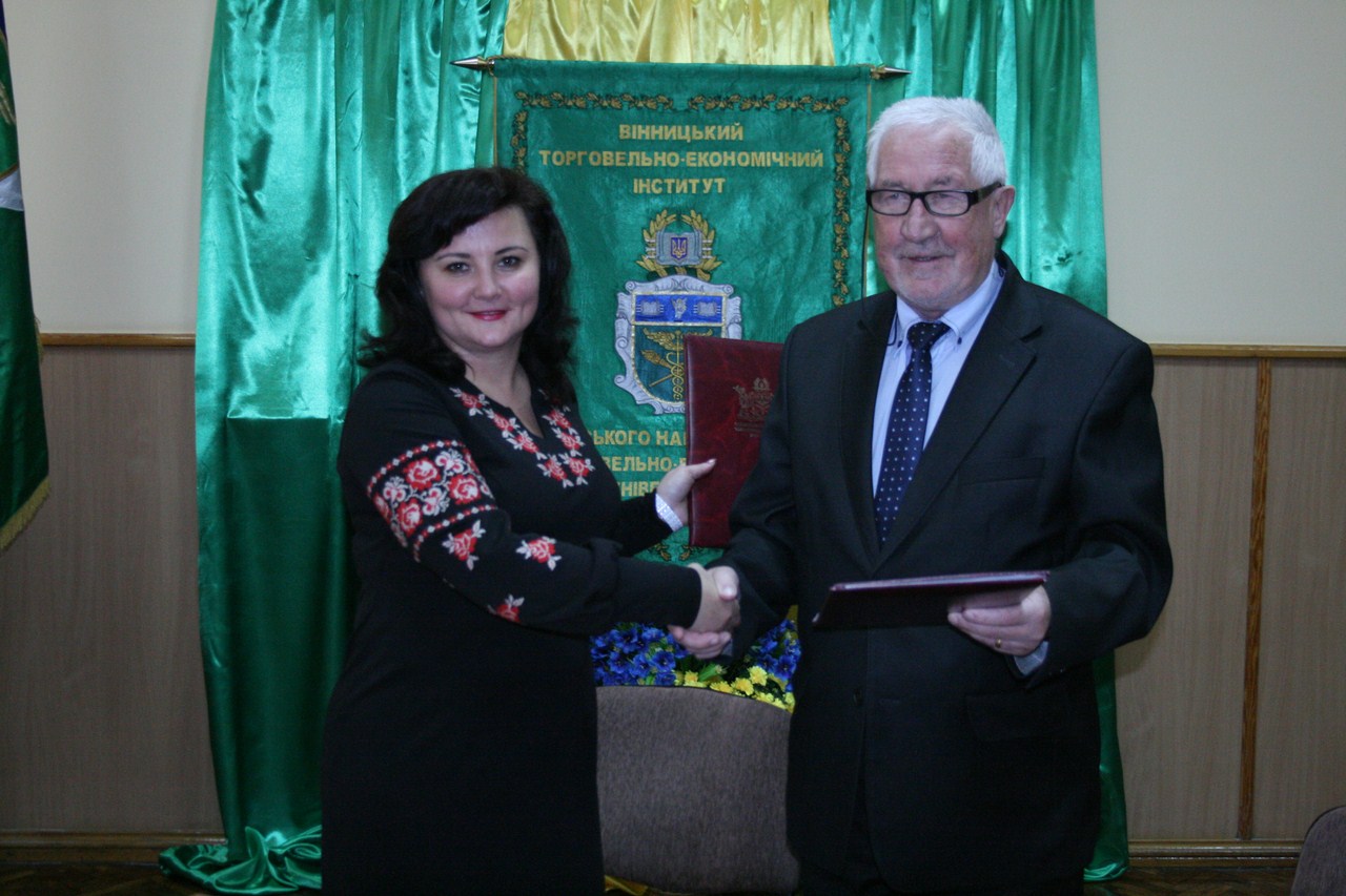 11 листопада у ВТЕІ КНТЕУ відбулась зустріч з представниками Вищої школи соціально-економічних наук на чолі з проректором професором Джерзі Бабіаком. В рамках зустрічі обговорювались питання визначення умов співробітництва щодо здійснення двостороннього обміну студентами та реалізації Програми подвійних дипломів між ВТЕІ КНТЕУ та ВШСЕН. За умов участі в програмі подвійних дипломів студенти будуть паралельно зараховані на комбіновану (дистанційну та очну) форми навчання. Відбулася офіційна церемонія підписання Угоди про співпрацю між ВТЕІ КНТЕУ та ВШСЕН. Після чого відбулася широка дискусія на тему розвитку вищої освіти і науки у Польщі та в Україні, були обговорені перспективи співробітництва, а також інші актуальні питання.