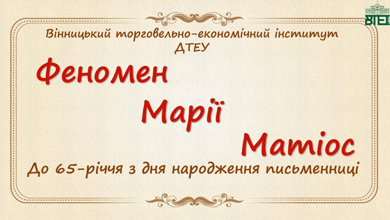 19 грудня 2024 року виповнюється 65 років з дня народження Марії Василівни Матіос, української письменниці та поетеси, громадської діячки, переможниці численних літературних премій, зокрема Шевченківської премії з літератури, Коронації слова та Книги року BBC, політичної діячки. М. Матіос має неофіційний титул «найпліднішої письменниці України», входить до сотні найвпливовіших жінок України.
