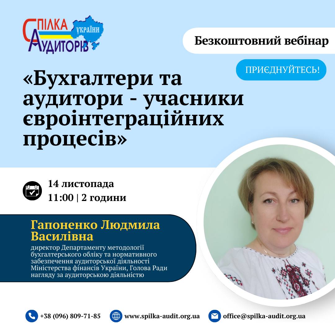 Викладачі кафедри обліку та оподаткування приймали участь у вебінарі, що був організований Спілкою Аудиторів України, який провела «головний бухгалтер України» - директор Департаменту бухгалтерського обліку та нормативного забезпечення аудиторської діяльності Міністерства фінансів України, Голова Ради нагляду за аудиторською діяльністю.