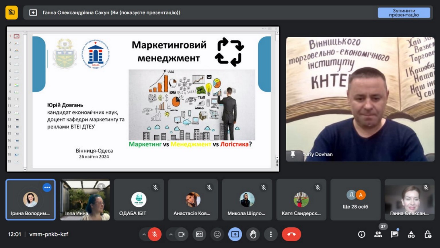 26 квітня 2024 року кандидатом економічних наук, доцентом, доцентом кафедри маркетингу та реклами ВТЕІ ДТЕУ Юрієм Довганем проведено гостьову лекцію для здобувачів вищої освіти Одеської державної академії будівництва та архітектури (м. Одеса).