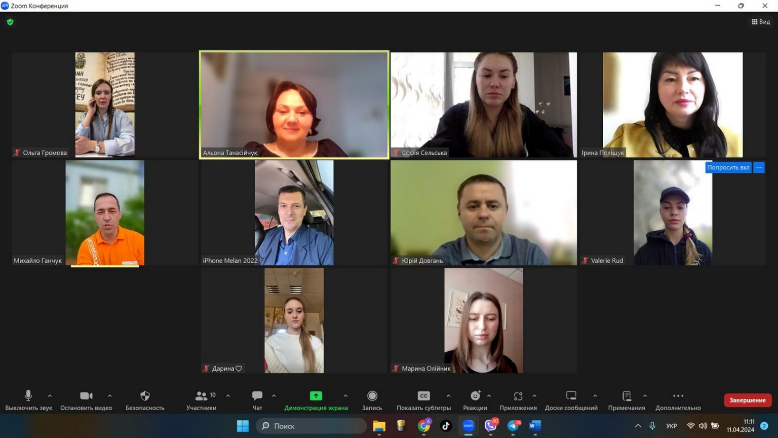 11 квітня 2024 року відбулася підсумкова зустріч робочих груп освітньо-професійних програм «Маркетинг», «Логістика» та «Реклама і зв'язки з громадськістю» кафедри маркетингу та реклами Вінницького торговельно-економічного інституту ДТЕУ, здобувачів вищої освіти, випускників та роботодавців. Зустріч відбулася у форматі онлайн-засідання на платформі Zoom.